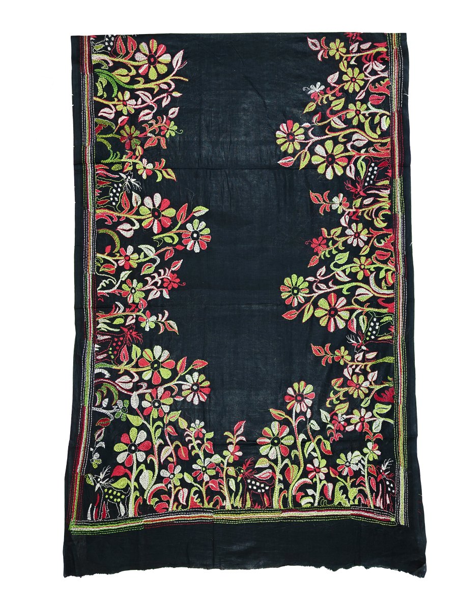 The unique Santiniketan Kantha Stitched Dupatta from Soul of Bengal captivates everyone with its gorgeous and sophisticated appearance. Kantha stitching combines beautiful needlework with decorative running stitches to create intricate artistic handiwork. This artwork is completed over the course of several months. Whether it is a traditional or Western ensemble, this cotton dupatta offers a stylish touch. When wrapped around the shoulders, it will more beautifully highlight your style.