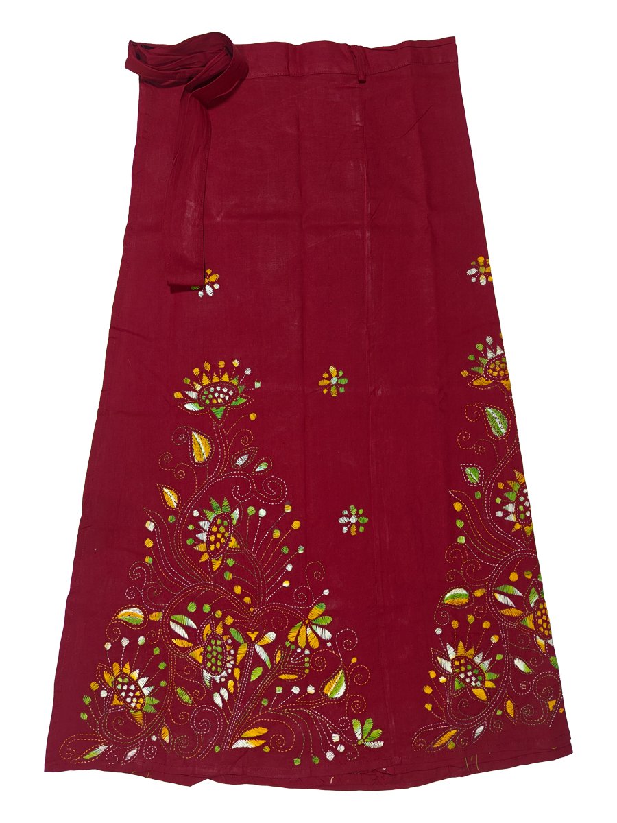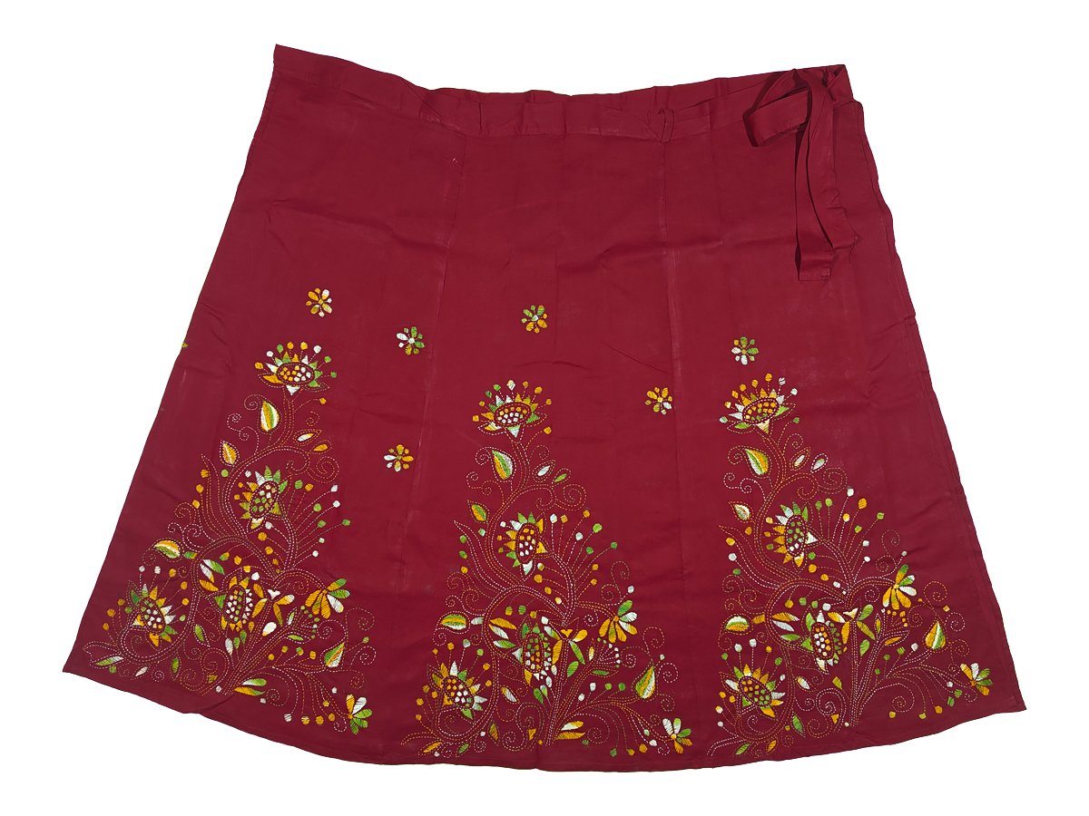With its stunning and sophisticated appearance, Soul of Bengal’s distinctive Santiniketan Kantha Stitched Wrap Around Skirt captivates everyone. Kantha embroidery is a long-standing custom in Bengal. The fabric’s flowing and darning stitches are primarily responsible for its subtle grace and richness. Each piece showcases the rural women’s uniqueness and inventiveness via their creativity and expertise. Kantha work involves complex artistic handwork done by the artisans with a blend of exquisite embroidery in ornamental running stitches. When worn with kameeez, shirts, short kurtis, tank tops, or any other upper garment of your choosing, it looks incredibly great and stylish. This is comfy, elegant, and soft enough to wear in any season. ideal for informal attire. Your sense of elegance is elevated by this Kantha embroidery. When you want to be the life of the party, this hand-embroidered wraparound skirt is a great piece of clothing.