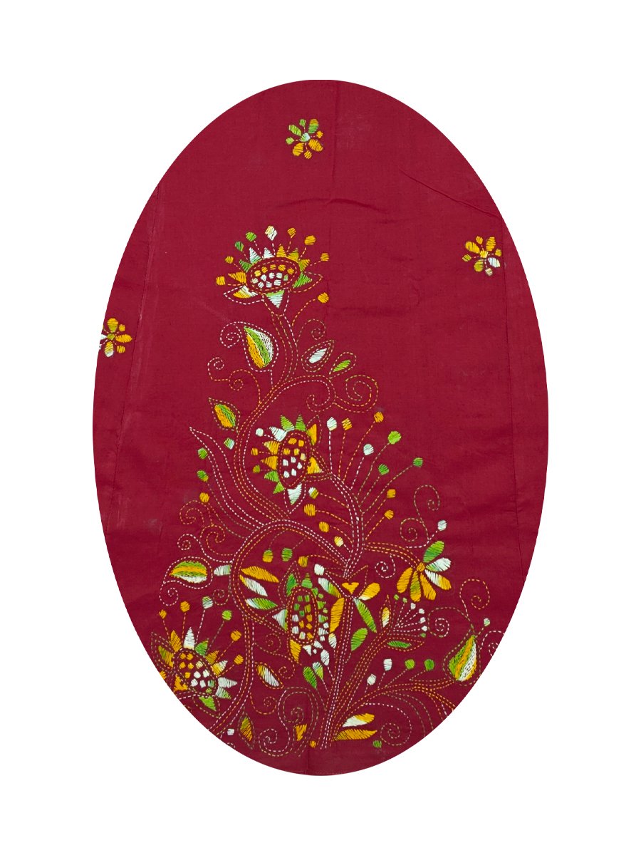 These products are handmade. There can be a few irregularities in the alignment of the stitching. Extensive stitching on the fabric may reduce the length and breadth of the clothes by a few centimeters. Also, wrinkle-free clothes with Kantha Stitch are almost impossible even after thorough ironing. The finished product may not appear as a machine-made finished product. You will receive a pre-washed and polished product.